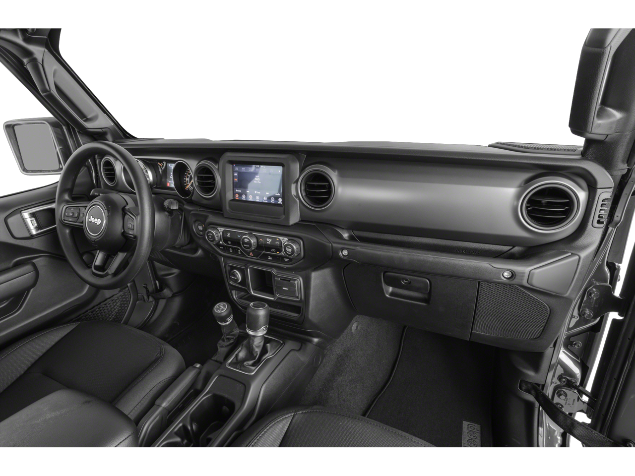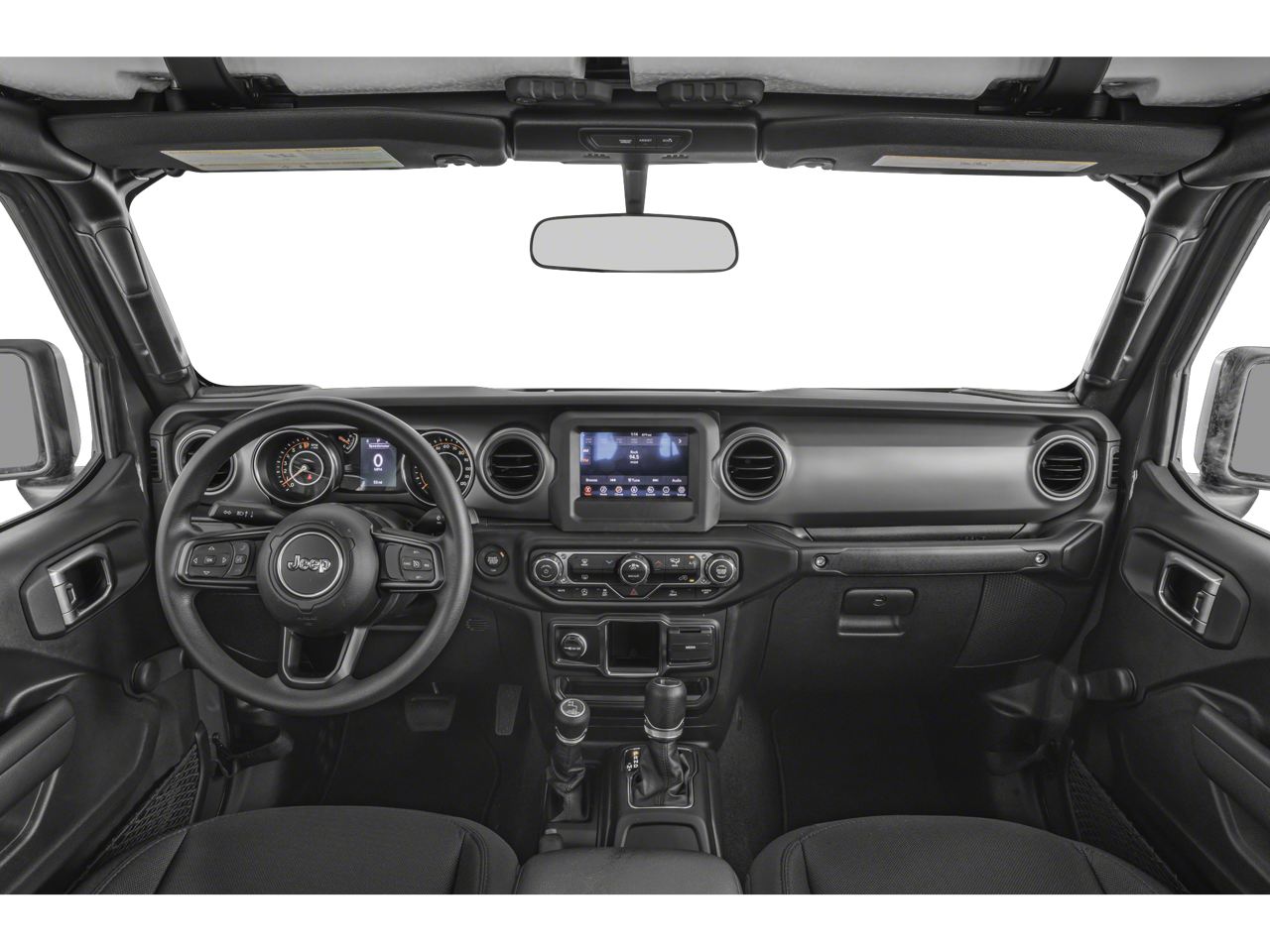 Inside, the Gladiator Sport's cabin is designed with your comfort and convenience in mind. Cloth low-back bucket seats provide ample support, while the split-folding rear seat and integrated center stack radio with Apple CarPlay and Android Auto connectivity ensure you stay connected and organized on every adventure.